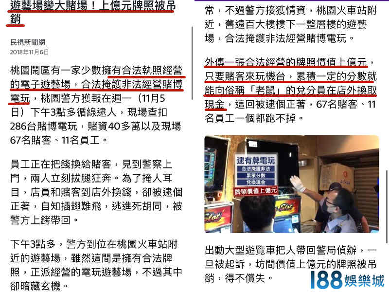 賭客換現金基本上是沒有被抓問題,目前在台灣有合法牌照經營的遊藝場實力堅強,後台關係也很強大,在警方要來查緝前一晚就會收到通知,通常會被警方破獲的實體遊藝場,都是保護費繳不夠多。