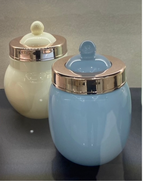 可以選擇專用的「白瓷罐」,目前有製造一款雙層防護的「白瓷罐」,用三道高溫燒製,質地厚實也會比較堅硬,還有上琺瑯固化,不僅好保養,造型也更時尚簡約,也是最多家屬的選擇,從小型犬到大型犬的尺寸都有喔。